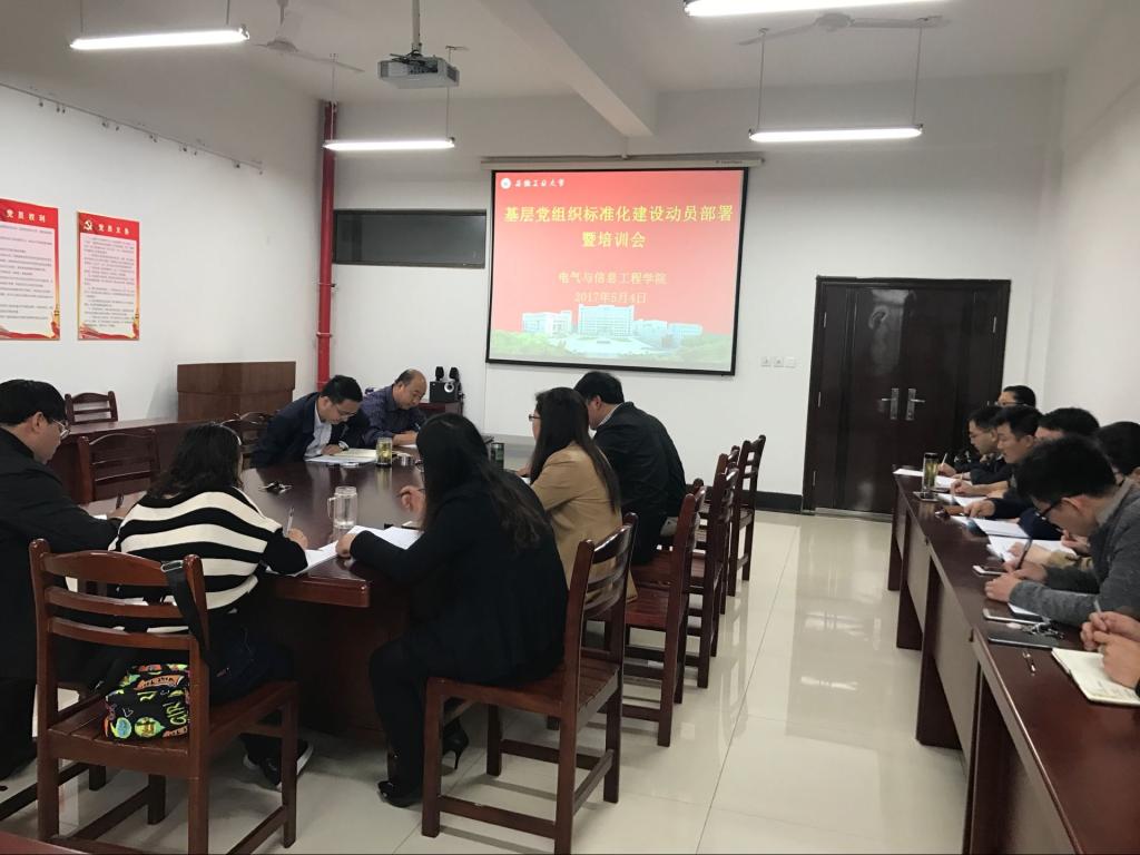 5月4日上午,公海gh555000aa线路检测在电气楼304会议室召开党支部书记工作例会,部署推进基层党组织标准化建设工作会议并进行了专题培训。公海gh555000aa线路检测党委书记叶凤华、党委副书记郭宏、各教工党支部书记、员工党支部书记和党务秘书参加会议。会议由叶凤华主持。