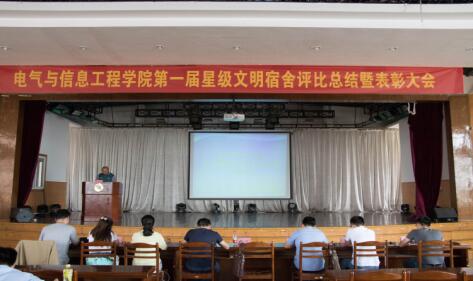 6月14日中午,电气学院在旧老员工活动中心组织召开了第一届星级宿舍评比总结暨表彰大会。党委副书记副经理郭宏、学院团委书记孔洋波以及学院各年级辅导员出席了本次会议。