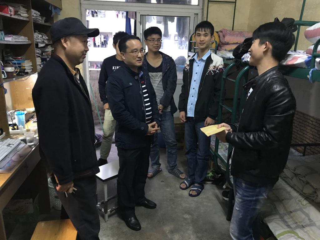 “最近生活怎么样啊?天冷了要多添衣服啊。”还未坐定,学院领导就亲切的慰问王唱和李俊杰最近的生活和学习安排。在交谈中,得知王唱同学利用课余时间在老员工就业指导中心勤工助学,叶凤华为他竖起来大拇指,鼓励他多锻炼,在提升学习能力的基础上要兼顾品格的磨练和才干的增长。李俊杰同学现在已经大四,正在宿舍修改简历,党委副书记副经理郭宏轻轻地拍着他的肩膀,指导他稍作调整。他告诉学院领导,毕业后就想工作为家庭分担一部分压力,目前已经拿到了一份offer。