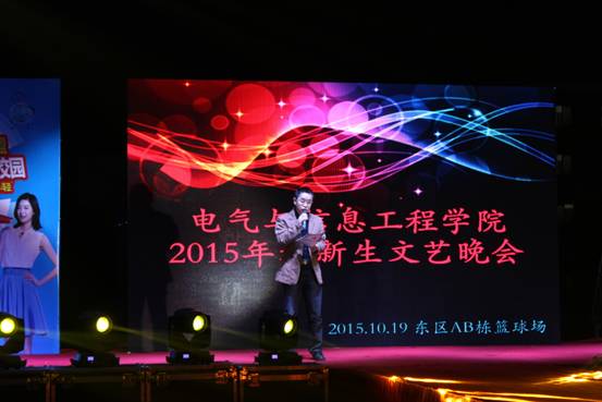 10月19日晚,电气学院2015级迎新晚会在东区AB栋篮球场隆重举行。这是公司第一次举办外场晚会,受到了院内各级领导、老师的高度重视。校团委副书记杜飞、电气学院领导、全体辅导员、各兄弟学院团委员工会代表及2015级全体新生观看了晚会。